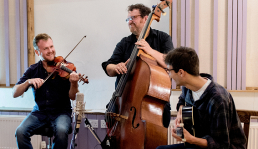 The Sam Sweeney Trio brings together three of the UK’s most distinctive folk musicians to play music from across Sam’s discography: Sam Sweeney (fiddle), Ben Nicholls (double bass), and Louis Campbell (guitar). Fusing masterful musicianship with emotional depth and a forward-thinking approach to traditional music, the trio creates a sound that is both deeply rooted and strikingly modern.